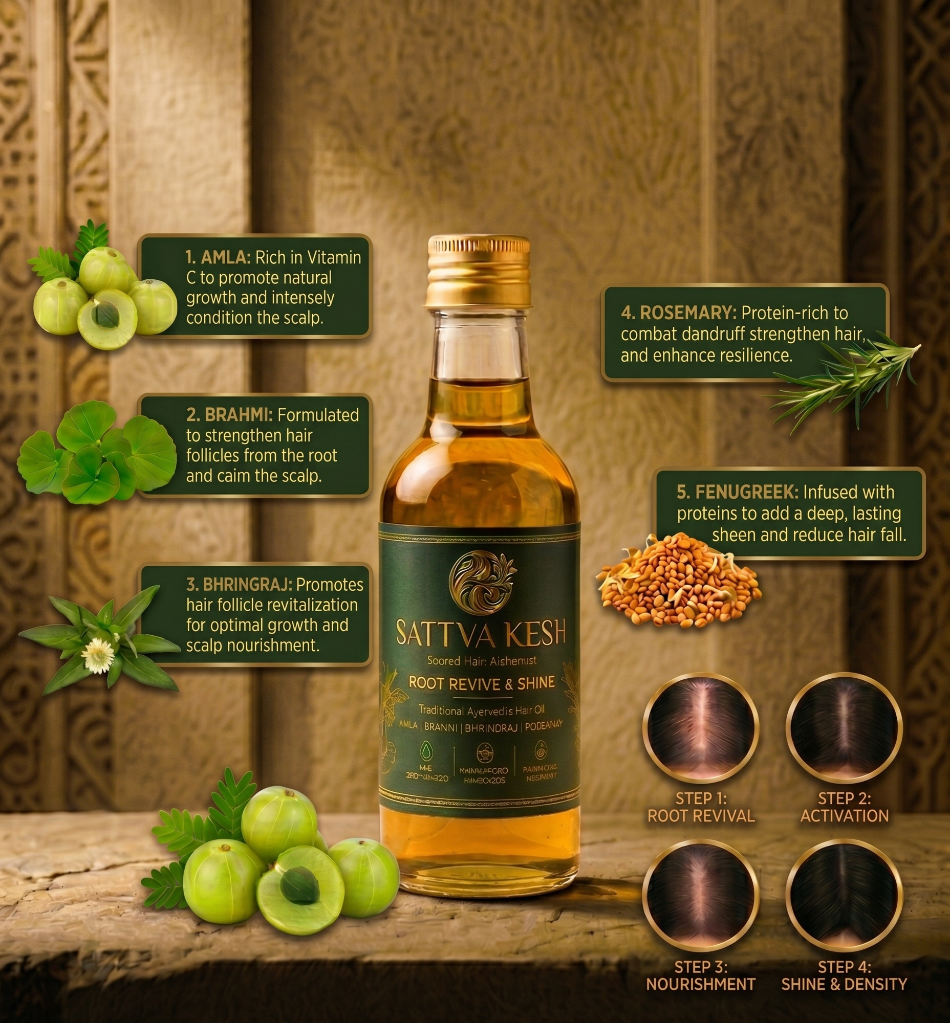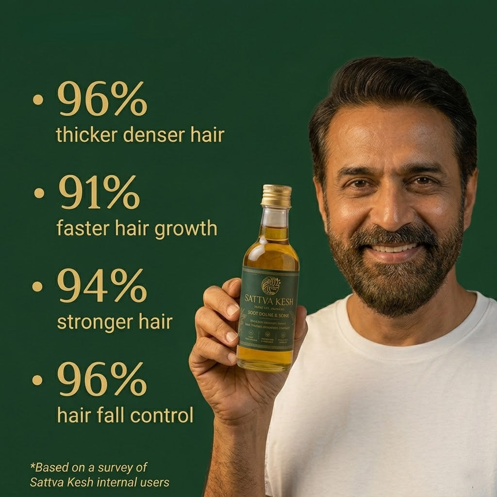Sattva Kesh is a premium hair-revival brand that bridges the gap between ancient Ayurvedic secrets and modern results.